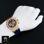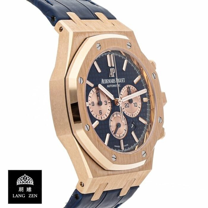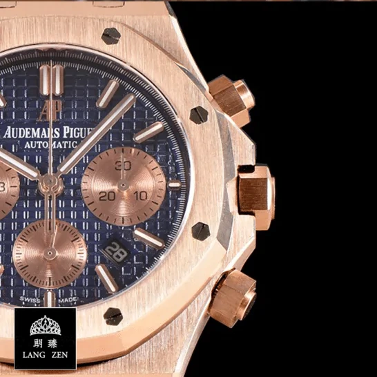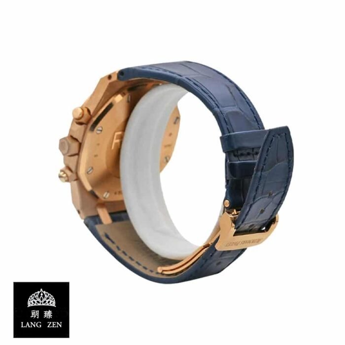 The Audemars Piguet Royal Oak Automatic Replica is a luxury watch. It features a 904L stainless steel case and bezel in a beautiful pink gold color. The case is 41.00 mm in size and 11.00 mm thick. The bracelet is made of crocodile skin and is adjustable to fit all sizes. The clasp is stainless steel and also pink gold. The dial is blue with stick and dot indices and Royal Oak hour-markers. The movement is an AP 2385 automatic caliber with a power reserve of 60 hours and a precision of (-3/+3 sec/day) within COSC certification limits