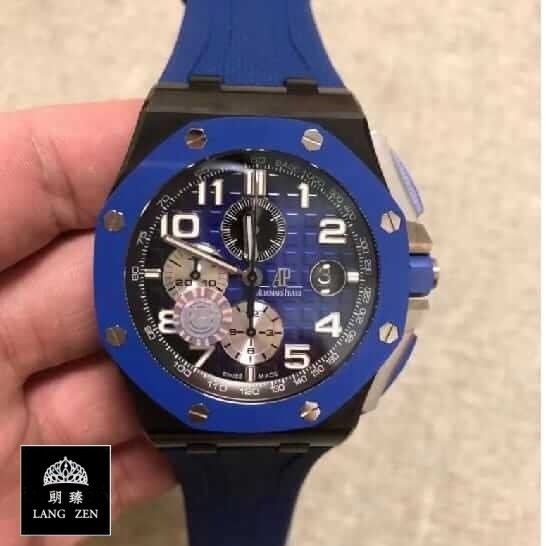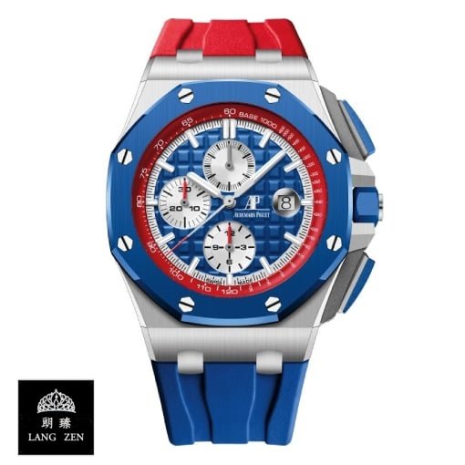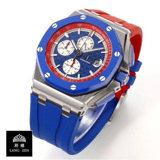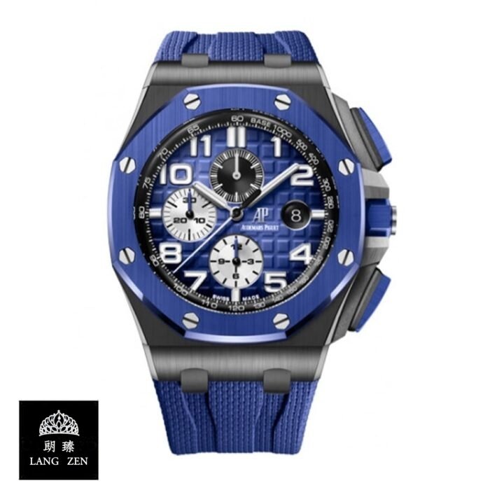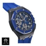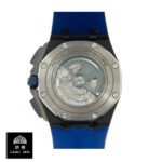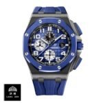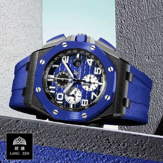 AP Offshore Marine Rubber Replica. part of Audemars Piguet’s renowned Royal Oak Offshore collection. This watch is powered by an automatic AP 3126 / 3840 caliber. delivering high precision and boasting an impressive 60-hour power reserve. Encased in 904L stainless steel of a cool steel blue color. the case pairs perfectly with the blue bezel and dial protected by a sapphire crystal. This design harmony continues to the blue rubber bracelet. which features adjustable links and is fastened with a steel-colored 904L stainless steel buckle.