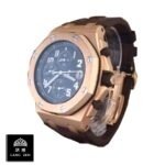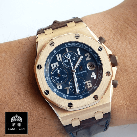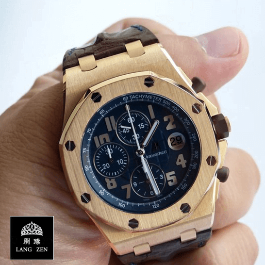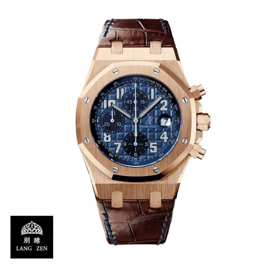 The Audemars Piguet Royal Oak Offshore Pride of Argentina 26365OR.OO.D801CR.01 Replica is a high quality watch. It features a 904L stainless steel case and bezel in a rose gold color. with a sapphire crystal and a 42.00mm size. The movement is an Automatic AP 2326 / 2840 with a 60-hour power reserve and a precision of (-3/+3 sec/day) within COSC certification limits. The dial is a blue M??ga Tapisserie with Arabic numerals and Royal Oak hour-markers. The bracelet is a stitched Hornback Alligator Leather in brown. with an adjustable 904L stainless steel deployment clasp with push button release.