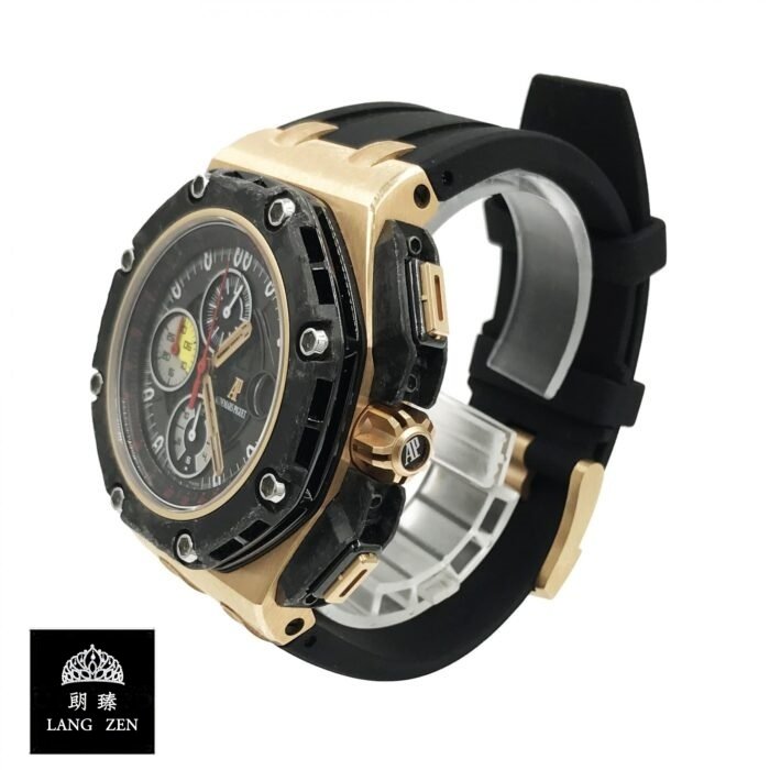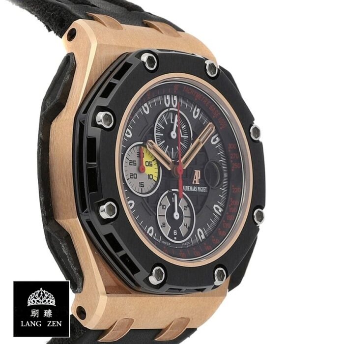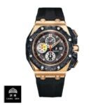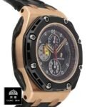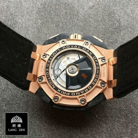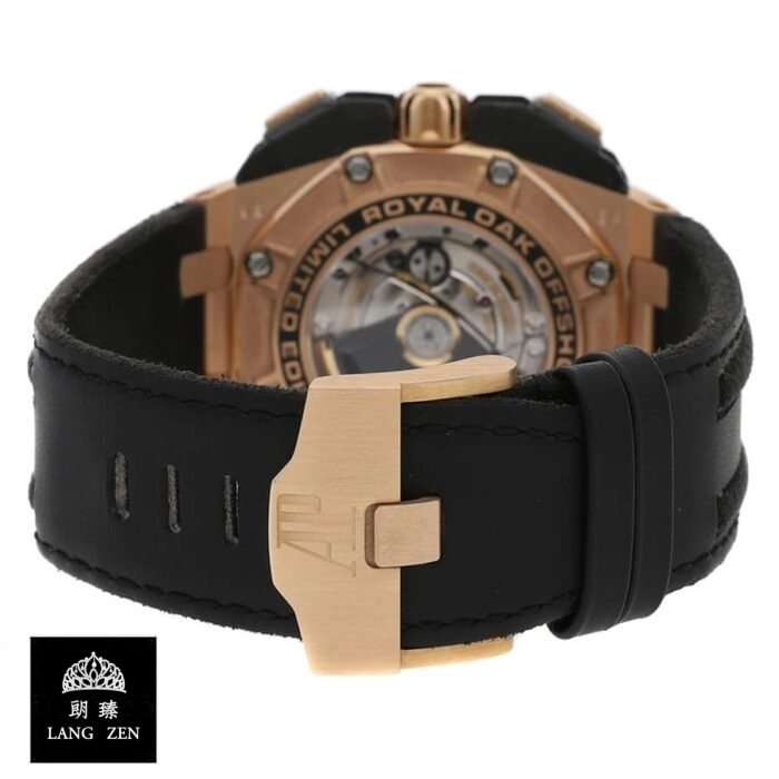 The Audemars Piguet Royal Oak Offshore Replica is a 1:1 super clone Swiss mechanism watch. It features a 904L stainless steel case with a black bezel and a sapphire crystal. The 44.00 mm case is 15.7 mm thick and is available in pink gold. The black rubber bracelet is adjustable and features a 904L stainless steel AP folding clasp in pink gold.