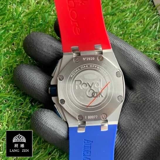 The Audemars Piguet Ryder Cup USA Replica is a marvel of watchmaking that combines Swiss precision with luxurious design. Crafted from 904L stainless steel. the robust yet elegant case and bezel offer durability. while the blue crystal dial exudes a sense of sophistication. The watch is powered by an automatic AP 3126 / 3840 movement and offers approximately 60 hours of power reserve. ensuring timekeeping is accurate to COSC certification limits.The watch’s aesthetics are complemented by its functionality. offering features such as hours. minutes. small seconds. date. and chronograph. Its rubber bracelet. adjustable to all sizes. provides a comfortable fit. while the steel buckle clasp ensures a secure grip. The watch also passed the 30m water resistance test. though swimming is not recommended. It truly mirrors the authentic watch. down to the font. punto. and finishings for writings and markings. This is the pinnacle of our 1:1 super clone Swiss mechanism watches. and comes with a full 2-year Lang Zen Luxury warranty.