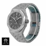 The Audemars Piguet Royal Oak 15451ST.ZZ.1256ST.02 is a luxury replica watch. It features an automatic movement with a caliber AP 3120 and a power reserve of 60 hours. It is certified within COSC limits for precision of -3/+3 seconds per day. The case is made of 904L stainless steel and has a sapphire crystal. The bezel is also made of 904L stainless steel and is gem set. The size of the case is 37.00 mm and it is 9.08 mm thick.