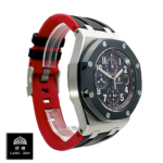 The Audemars Piguet Royal Oak Offshore 26470SO.OO.A002CA.01 replica is a 1:1 super clone Swiss mechanism watch. It features a 904L stainless steel case with a black bezel and sapphire crystal. The movement is an automatic AP 3126 / 3840 caliber with a power reserve of 60 hours and a precision of (-3/+3 sec/day) within COSC certification limits. The bracelet is made of rubber with adjustable links and a 904L stainless steel pin clasp.