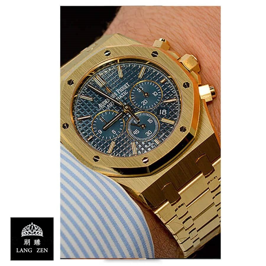 The Audemars Piguet Royal Oak 26320BA.OO.1220BA.02 replica is a luxury watch. It features a 904L stainless steel case and bezel in a beautiful yellow gold color. The case is 41.00 mm in size and 10.80mm thick. and is fitted with a sapphire crystal. The Royal Oak bracelet is adjustable and made of 904L stainless steel in a matching yellow gold color. The dial is blue with stick and dot indices. and features Royal Oak hour-markers and hands made of 904L stainless steel.