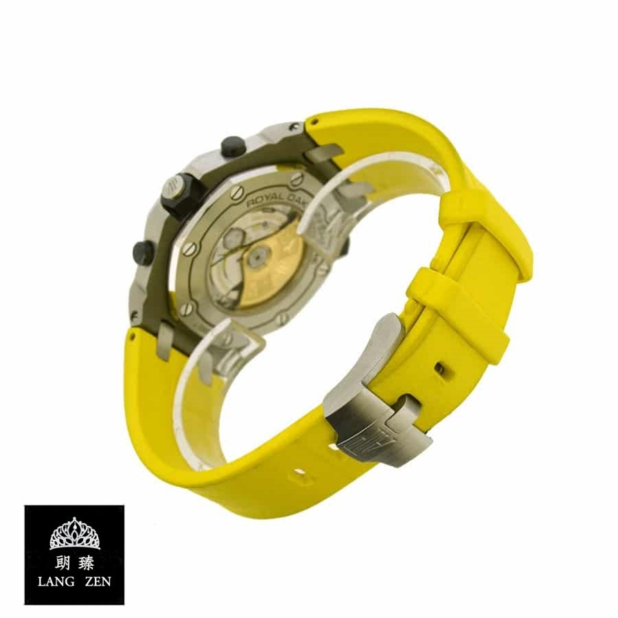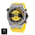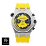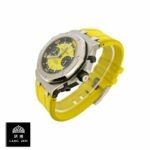 The Audemars Piguet Diver Replica is a part of the Royal Oak Offshore family. with model number 26703ST.OO.A051CA.01. It is powered by an automatic movement. caliber AP 3124 / 3841. with a power reserve of 60 hours and a precision of (-3/+3 sec/day) within COSC certification limits. The second hand has a sweep motion. The case is made of 904L stainless steel. with a steel bezel and sapphire crystal. The bracelet is made of rubber. with adjustable links. a 904L stainless steel thorn clasp. and a steel color. The dial is yellow and blue. with stick and dot indices. 904L stainless steel hour markers and stick hands. It has the functions of hours. minutes. small seconds. and chronograph. It has passed the 30m water resistance test. and is protected by a full 2 years Lang Zen Luxury warranty.