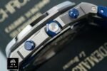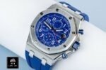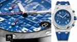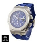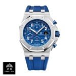 The Audemars Piguet Navy Replica is a part of the Royal Oak Offshore family. with model number 26408OR.OO.A010CA.01. It features an automatic movement with caliber 3126 / 3840 and a power reserve of 60 hours. The precision of the watch is within COSC certification limits. with a sweep motion second hand. The case is made of 904L stainless steel. with a steel color and a sapphire crystal. The bracelet is made of rubber. with adjustable links and a pin clasp. The dial is blue with Arabic numerals and 904L stainless steel hour markers and hands. The watch is water-resistant and comes with a 2 year international warranty.