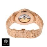 This Audemars Piguet Pink Gold Replica is a high quality piece of craftsmanship. It features a 904L stainless steel case and bezel. both in a beautiful pink gold color. The 39.00 mm case is fitted with a sapphire crystal and is powered by an Automatic AP 2121 caliber with a 60-hour power reserve and a precision of (-3/+3 sec/day) within COSC certification limits. The Royal Oak bracelet is also made of 904L stainless steel and is adjustable for all sizes.