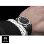 The Royal Oak Jumbo Replica from Audemars Piguet is a striking watch. It features an automatic movement with a caliber AP 3120 and a power reserve of 60 hours. The case is made of 904L stainless steel and has a sapphire crystal. It is 41.00 mm in size and 9.80mm thick. The bracelet is also made of 904L stainless steel and has adjustable links for all sizes. The dial is nicknamed the Grande Tapisserie and is black with stick and dot indices. The hour markers are made of 904L stainless steel and the hands are stick. The watch has a date function and is water-resistant up to 30m.