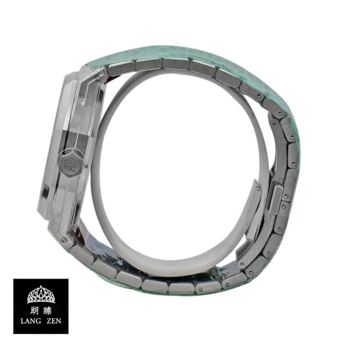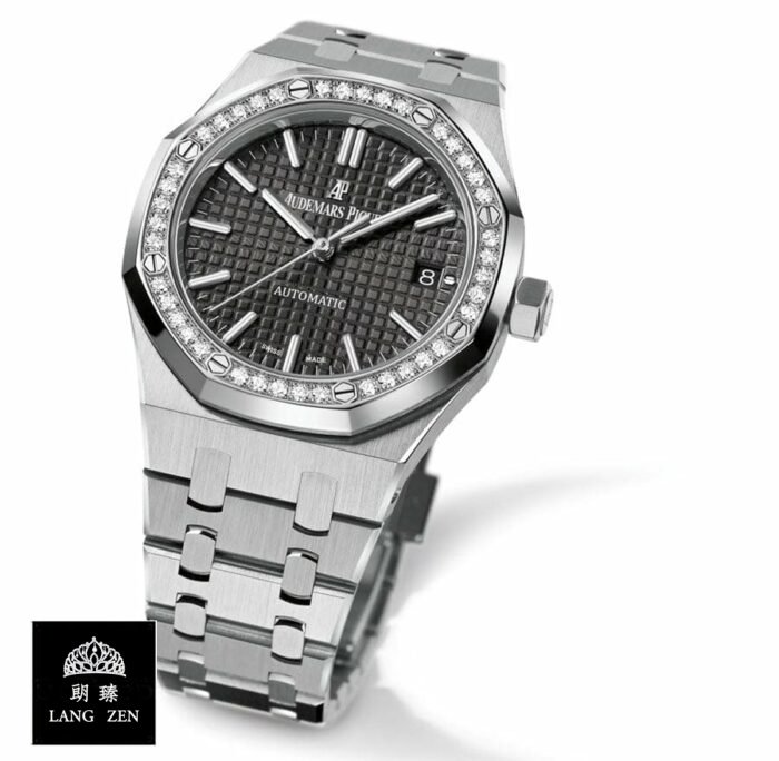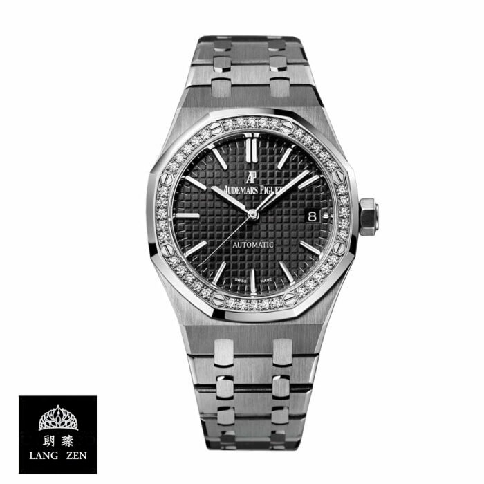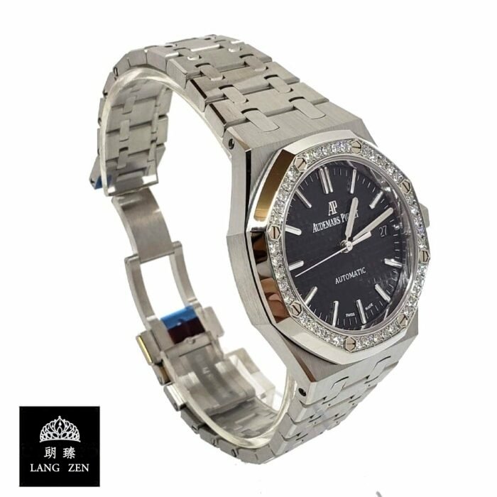 The Audemars Piguet Royal Oak 15451ST.ZZ.1256ST.01 replica is a luxury watch. The case is made of 904L stainless steel and is 37.00 mm in size with a thickness of 9.80mm. The bezel is also made of 904L stainless steel and is gem-set. The crystal is a sapphire and the bracelet is a Royal Oak bracelet made of 904L stainless steel with adjustable links.