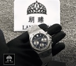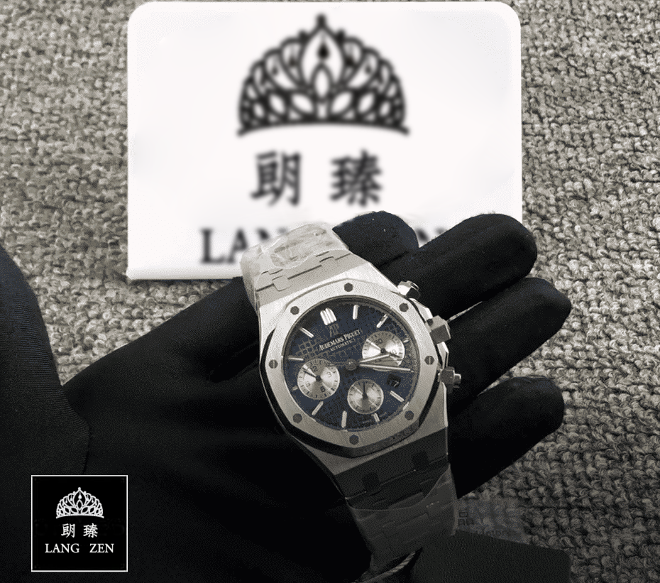 The dial is a blue Grande Tapisserie with stick/dot indices and Royal Oak hour-markers. The hands are 904L stainless steel sticks. The watch has passed the 30m water resistance test and is protected by a full 2 year Lang Zen Luxury warranty. It is a perfect 1:1 super clone Swiss mechanism watch that even your jeweler won’t be able to tell the difference.