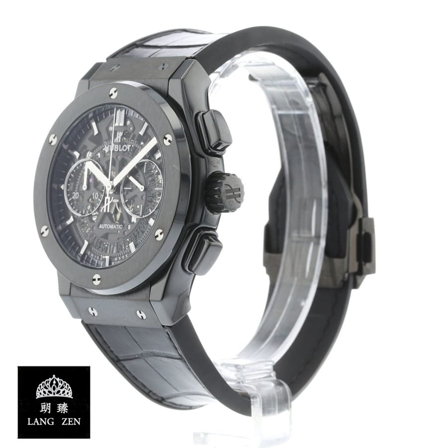 The Hublot Big Bang Chronograph 525.CM.0170.RX Replica is a luxury watch. It features a 904L stainless steel case and bezel. with a black finish and diamond accents. The movement is an automatic HUB 1155 caliber. with a power reserve of 60 hours and a precision of (-3/+3 sec/day) within COSC certification limits. The second hand has a sweep motion. The bracelet is made of rubber. with adjustable links and a 904L stainless steel fold clasp.
