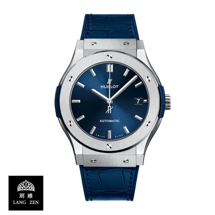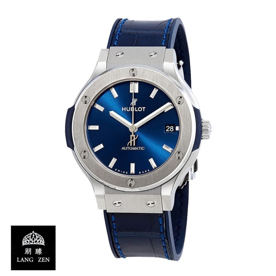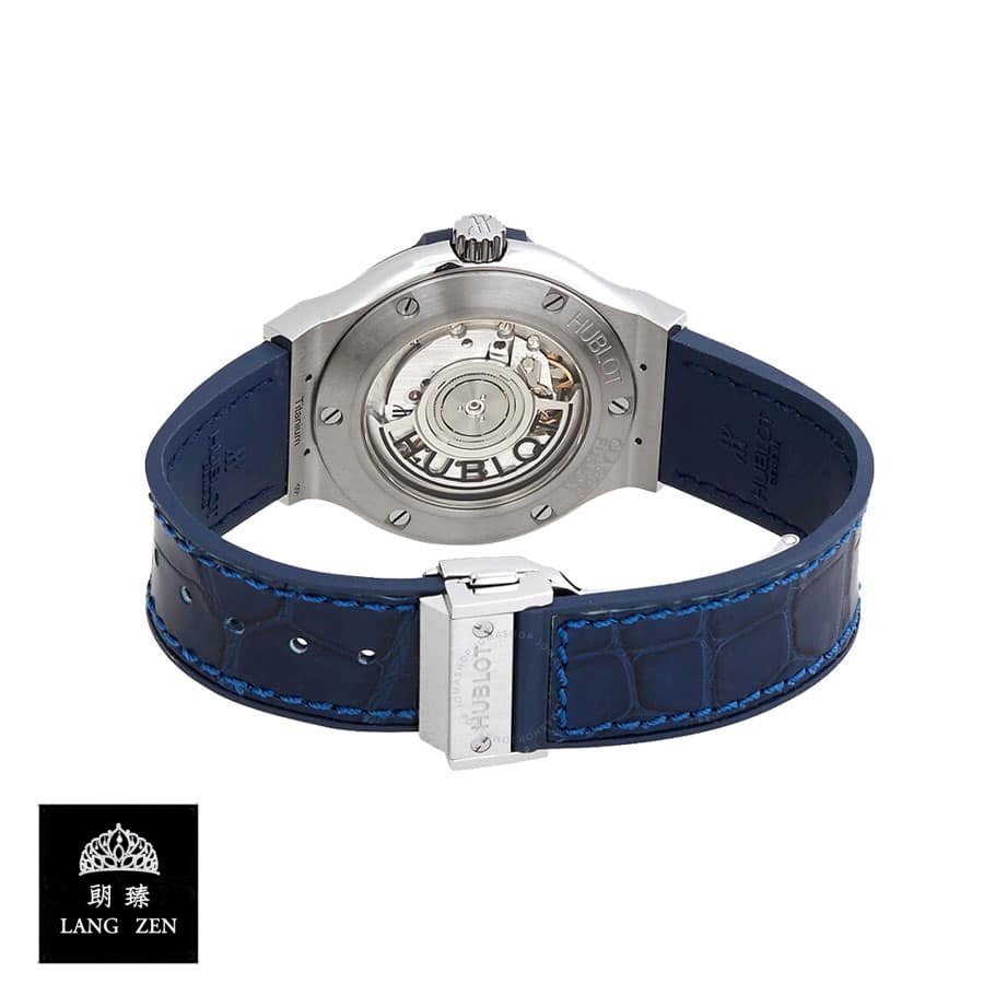 The Hublot Classic Fusion Automatic Blue Sunray Dial Titanium 565.NX.7170.LR Replica is a luxury watch. It features a 904L stainless steel case and bezel. with a sapphire crystal and a steel folding clasp. The movement is an automatic HUB1110 caliber with a 60-hour power reserve and a precision of -3/+3 seconds per day within COSC certification limits. The dial is blue with stick indices and hands. and the bracelet is made of crocodile skin with adjustable links.