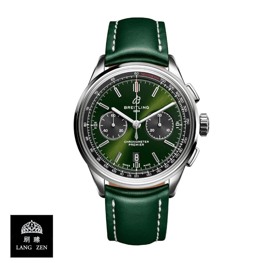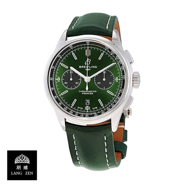 The Breitling Premier B01 Green Chronograph 42 Bentley AB0118A11L1X1 Replica is a luxury watch. It features a 904L stainless steel case with a steel bezel and sapphire crystal. The movement is an automatic caliber B01 with a power reserve of 60 hours and precision of (-3/+3 sec/day) within COSC certification limits. The second hand has a sweep motion.