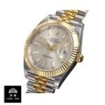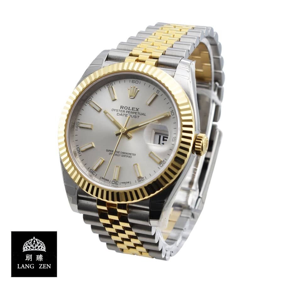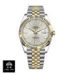 The bracelet is made of 904L stainless steel and is available in yellow gold and steel colors. It has adjustable links as genuine for all sizes and a fold clasp made of 904L stainless steel in yellow gold and steel colors. The dial is silver with stick and dot indices and stick hands made of 904L stainless steel. It has functions of hours. minutes. seconds. date. and chronometer. It has passed the 30m water resistance test and has the same arrangeable serial numbers and cards. font. punto. and finishing for writings and markings. thickness. and size as the authentic watch. It is covered by a full 2 years International warranty.