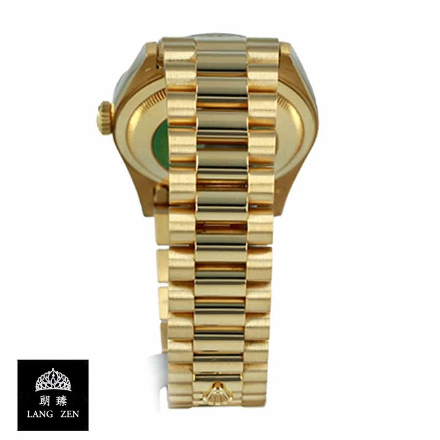 This Rolex Day-Date 40 228238-0003 replica is a stunning watch crafted with 904L stainless steel and yellow gold. The 40.00mm case is 12.00mm thick and features a sapphire crystal. The champagne dial features stick indices and stick hands crafted from 904L stainless steel. The 904L stainless steel oyster bracelet is adjustable and features a folding clasp in yellow gold.