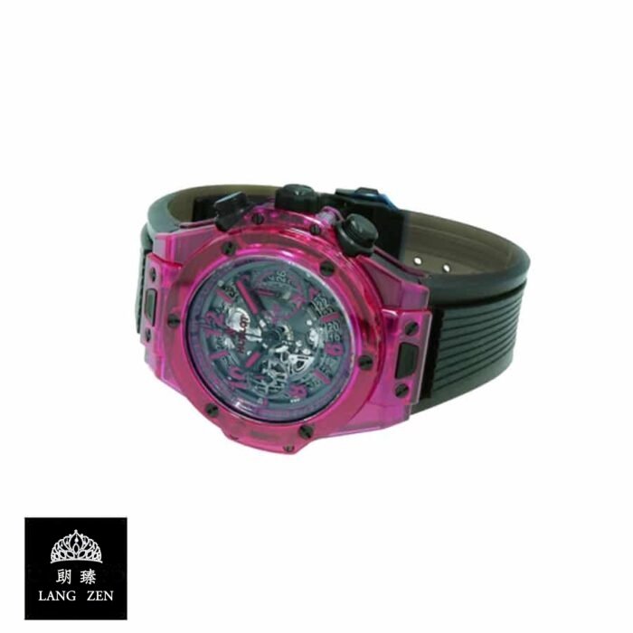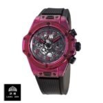 The Hublot Big Bang Unico Red Sapphire 411.JR.4901.RT Replica is a luxury watch that is sure to turn heads. It features a 45.00 mm resin case in a purple color with a black resin bezel. The sapphire crystal provides a clear view of the skeleton dial with mixed indices and 904L stainless steel stick hour markers and hands. The automatic movement. caliber HUB1242. has a power reserve of 60 hours and is accurate to within COSC certification limits. The adjustable rubber bracelet is black in color and features a 904L stainless steel double-fold clasp.