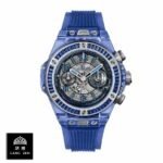 The Hublot Big Bang Unico Red Sapphire 411.JR.4901.RT.1902 Sapphire Replica is a luxurious watch that is sure to turn heads. It features a 45.00 mm resin. sapphire. and gem set case in a striking blue color. The bezel is made of resin and sapphire and is black in color. The crystal is a sapphire crystal for added durability. The bracelet is made of rubber and is adjustable for all sizes. It also features a double-fold clasp made of stainless steel and black in color.