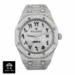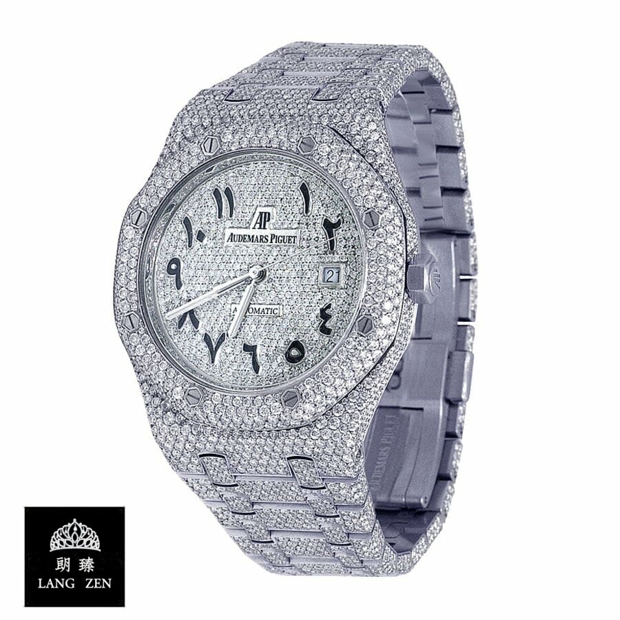 The Audemars Piguet Royal Oak Custom Pave Diamond Set (Arabic) Dial Replica is a high quality watch. It features a 904L stainless steel case and bezel. with a sapphire crystal and a steel color. The movement is an Automatic AP 3120 with a power reserve of 60 hours and a precision of (-3/+3 sec/day) within COSC certification limits. The second hand has a sweep motion. The bracelet is a 904L stainless steel Royal Oak Bracelet with adjustable links and a stainless steel fold clasp.