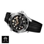 The bracelet is made of rubber with adjustable links and a 904L stainless steel fold clasp. The dial is black with stick and dot indices. and 904L stainless steel stick and dot hour markers and sword hands. The watch has a water resistance of 30m and comes with a 2 year international warranty. It is a perfect 1:1 super clone Swiss mechanism watch. with the same size. thickness. and markings as the original.