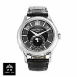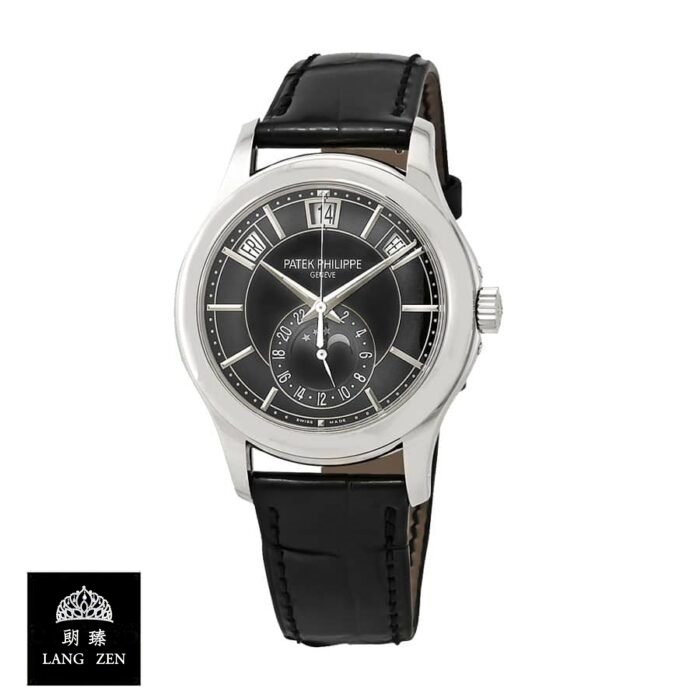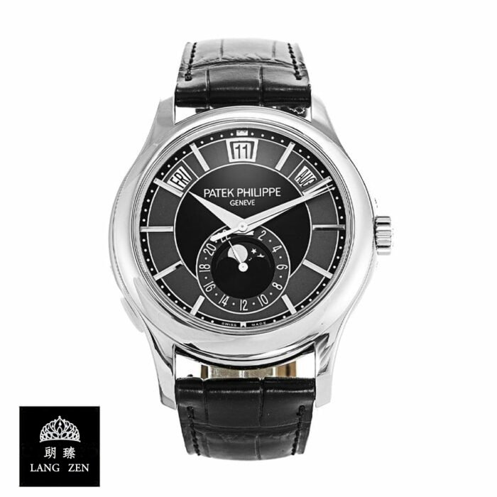 This Patek Philippe Complications Automatic Grey Dial 5205G-010 Replica is a high quality watch from Audemars Piguet. It features an Automatic Movement with a Caliber of 324 S QA LU 24H/206 and a power reserve of 60 hours. It has a 904L Stainless Steel case with a White Gold color and a Sapphire crystal. The bracelet is made of Alligator leather with an adjustable link and a 904L Stainless Steel Tang Clasp in White Gold. The dial is black with stick indices and 904L stainless steel Dauphine hands.