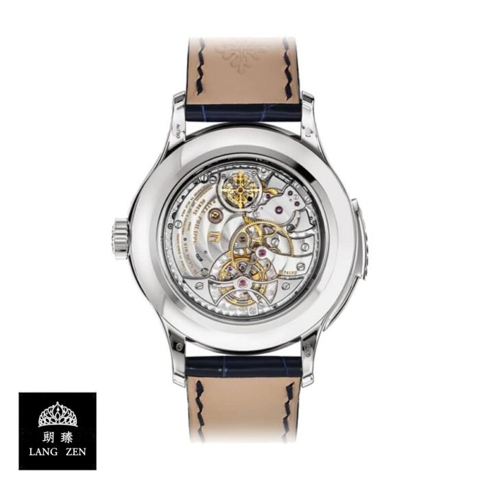 The Patek Philippe Grand Complications Minute Repeater Tourbillon Perpetual Calendar 5207G-001 Replica is a high quality watch. It features a 904L stainless steel case and bezel. both in white gold. and a sapphire crystal. The movement is an automatic caliber R TO 27 PS QI with a power reserve of 60 hours and a precision of (-3/+3 sec/day) within COSC certification limits. The bracelet is made of crocodile skin in a blue color with adjustable links and a 904L stainless steel pin clasp.