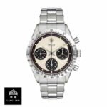 This watch quickly became very special and iconic. It was known for its unique black dial with white sub-dials and red accents. Newman also had his nickname. PN. engraved on the back of the case.