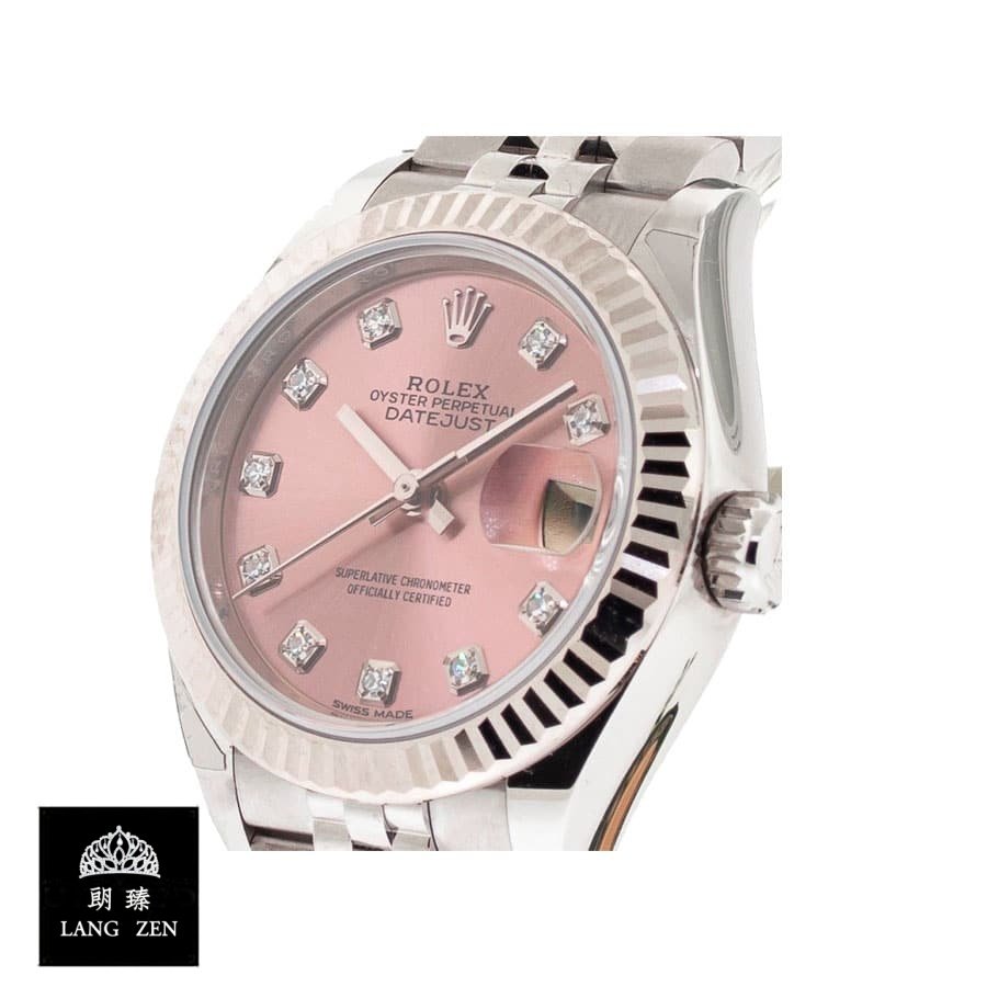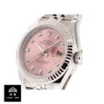 This Rolex Lady-Datejust 279174-0003 replica is a stunning watch. It features a 904L stainless steel case and a steel Jubilee bracelet with adjustable links. The pink dial is adorned with gem-set indices and 904L stainless steel stick hands. The movement is an automatic caliber 2236 with a 60-hour power reserve and a precision of -3/+3 seconds per day within COSC certification limits. The watch is also water-resistant up to 30m and comes with a full 2-year international warranty.
