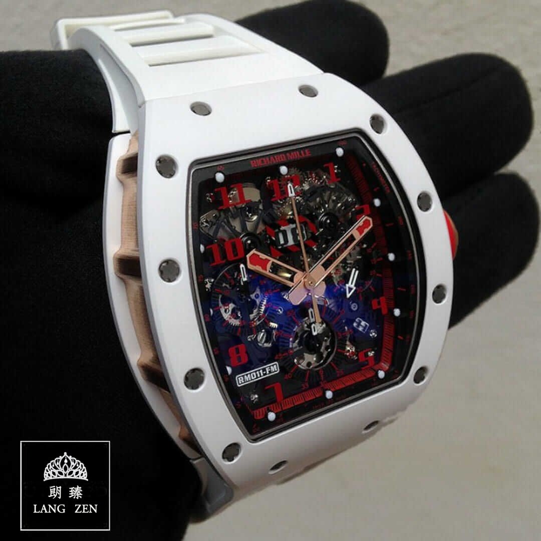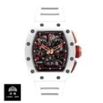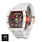 The Richard Mille RM 011-FM Flyback Chronograph White Demon Limited Chronograph Replica is a high quality watch from Audemars Piguet. It features an automatic RMAC1 movement with a power reserve of 60 hours and a precision of -3/+3 sec/day within COSC certification limits. The case is made of 904L stainless steel and is 50.00 mm in size with a thickness of 16.15 mm. The bezel is also made of 904L stainless steel and is white in color. The crystal is sapphire and the bracelet is rubber with adjustable links.