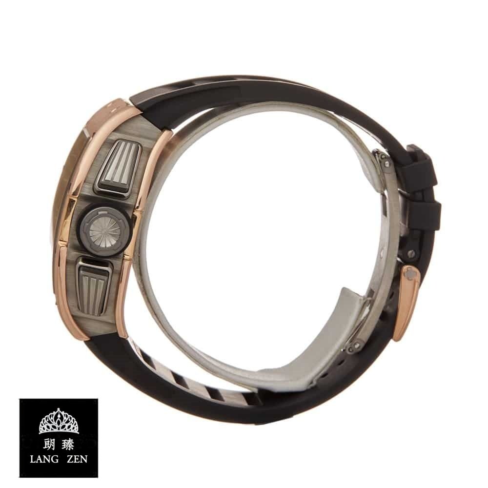 The bracelet is made of rubber and is adjustable for all sizes. The clasp is a double-fold clasp made of 904L stainless steel and is rose gold in color. The dial is transparent and features Arabic numerals as hour markers. The hands are made of 904L stainless steel and are stick-shaped. The watch has a variety of functions. including chronograph. flyback. panorama date. date. and annual calendar. It has passed the 30m water resistance test and is protected by a full 2 year international warranty. This watch is a perfect replica of the original and is sure to impress.