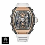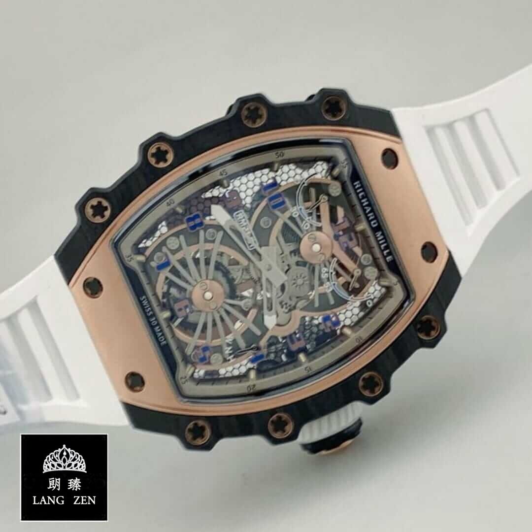 The Richard Mille RM 70-01 Tourbillon Alain Prost Automatic Replica is a luxurious watch with a 904L stainless steel case and black bezel. The case measures 49.48 x 54.88 mm and is 17.65 mm thick. The movement is an automatic caliber RM70-01 with a power reserve of 60 hours and a precision of (-3/+3 sec/day) within COSC certification limits. The second hand has a sweep motion. The bracelet is made of rubber and is adjustable for all sizes. with a 904L stainless steel fold clasp.The dial is black with triangle indices and 904L stainless steel stick hour markers and hands. The watch has a date function and a tourbillon. It has passed the 30m water resistance test and comes with a full 2 year international warranty. It is a perfect 1:1 super clone Swiss mechanism watch. with the same arrangeable serial numbers and cards. font. punto. and finishing for writings and markings. thickness. size. and powerful movement and caliber.