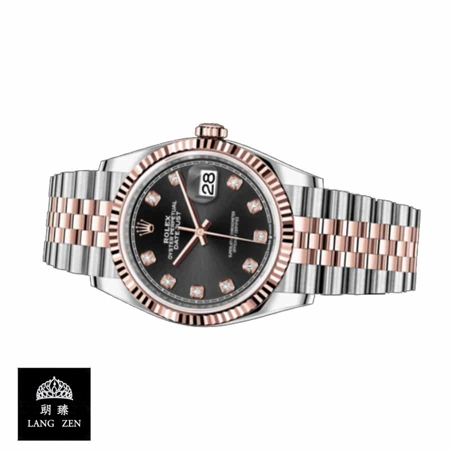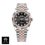 This Rolex Datejust 36 126231-0019 replica is a perfect 1:1 clone of the original. It features a 904L stainless steel case and bracelet. with a rose gold and steel color combination. The 36.00mm case houses a 3235 automatic movement with a 60-hour power reserve and a precision of -3/+3 sec/day within COSC certification limits. The black dial features gem-set indices and 904L stainless steel stick hands. The watch is water-resistant up to 30m and comes with a full 2-year international warranty.