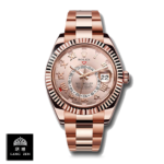 This Rolex Sky-Dweller 326935-0004 replica is a high quality piece of craftsmanship. It features a 904L stainless steel case in rose gold. with a sapphire crystal and a 904L stainless steel bezel in the same color. The 42.00mm case is 14.10mm thick. The bracelet is also made of 904L stainless steel. with an adjustable oyster type and a fold clasp in rose gold.