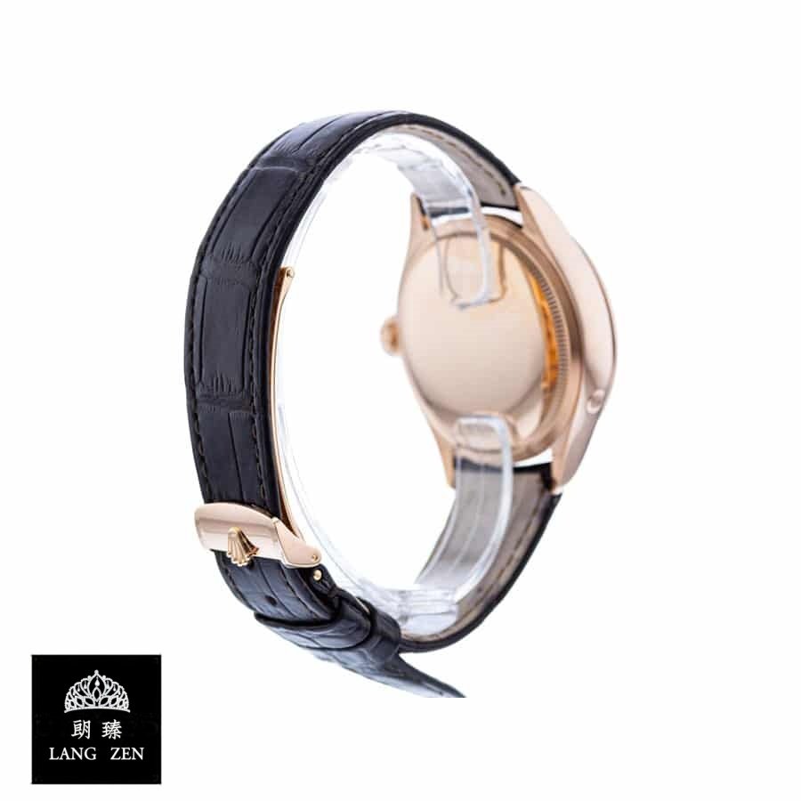 Crafted from?904L stainless steel with a sumptuous rose gold finish. the case of the Rolex Cellini Moonphase flaunts a robustness that ensures durability and an unwavering finish. The sapphire crystal evokes a sense of clarity and untarnished beauty. offering a pristine view of the white dial adorned with stick indices. The stainless steel stick hands glide effortlessly over the face. prisms of light reflecting their journey. Designed with precision. it houses an automatic caliber 3195 movement. boasting an impressive?60-hour power reserve. This hallmark of Swiss engineering is not just about aesthetics; it offers a precision of (-3/+3 sec/day) within the COSC certification limits. ensuring reliable timekeeping that aligns with the standards of horological excellence.