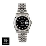What sets the Rolex Datejust 116234 apart is its meticulous design and unparalleled craftsmanship. The case and bezel are meticulously crafted from?904L stainless steel. renowned for its corrosion resistance and polished finish. ensuring your watch maintains its lustrous shine for years to come. The gem-set bezel doesn’t just add a layer of elegance; it captivates with a sparkling brilliance that draws the eye. making it a piece that stands out in any setting. The scratch-resistant sapphire crystal provides robust protection for the dial. ensuring that the watch remains pristine even with daily use. The?black dial. contrasted with gem-set indices and stainless steel stick hands. creates a sharp and sophisticated look that is both timeless and modern.