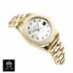 The bracelet. an adjustable oyster type made from the same high-quality 904L stainless steel. wraps securely around your wrist with a yellow gold folding clasp. enhancing both comfort and style. Whether you are attending a board meeting or an evening gala. this watch is designed to complement any attire. adding a touch of opulence to your ensemble.
