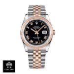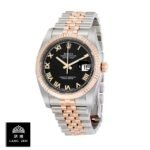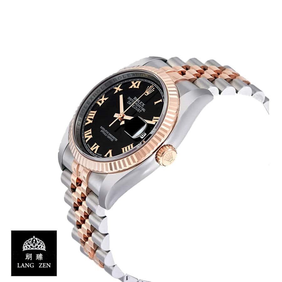 This Rolex Datejust Black Roman Replica is a perfect 1:1 clone of the original. It features a 904L stainless steel case. bezel. and bracelet. with a rose gold and steel color combination. The 36.00 mm case houses an automatic movement with a caliber of 3235 and a power reserve of 60 hours. The precision of the watch is within COSC certification limits. and the second hand has a sweep motion. The dial is black with Roman numerals as indices. and the hands are stick-shaped and made of 904L stainless steel.