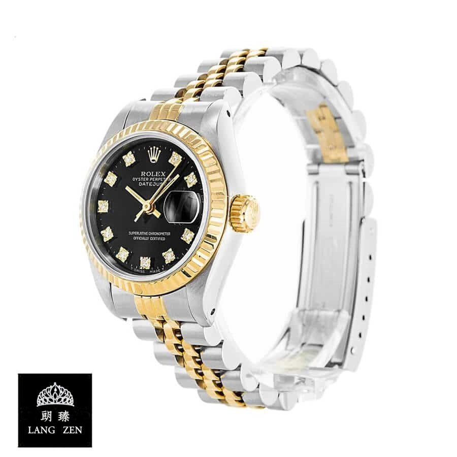 This Rolex Datejust Lady Diamond Replica is a stunning watch. It features a 904L stainless steel case with a yellow gold bezel and a sapphire crystal. The movement is an automatic caliber 2135 with a 60-hour power reserve and precision of -3/+3 sec/day within COSC certification limits. The bracelet is a 904L stainless steel Jubilee with adjustable links and a fold clasp. The dial is black with gem-set indices and 904L stainless steel stick hands. It also has an additional 24-hour hand that is adjustable. The watch is water-resistant up to 30m and comes with a 2-year international warranty.