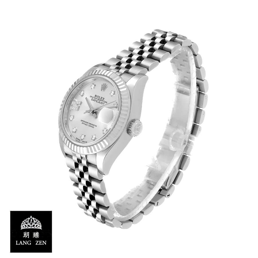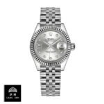This Rolex Lady-Datejust 279174-0021 replica watch is a stunning piece of craftsmanship. It features a 904L stainless steel case and bezel. with a steel color and sapphire crystal. The Jubilee bracelet is also made of 904L stainless steel. with adjustable links and a fold clasp. The silver dial has gem-set indices and 904L stainless steel hour markers and hands.