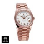 What truly sets this replica apart is its status as a 1:1 super clone. featuring the same?serial numbers and cards. font precision. punto. and finishing as the authentic Rolex. When you wear the Rolex Day-Date 228235 KW Rose Gold White Dial Replica. you embody the pinnacle of luxury without compromising on quality or detail. This is not merely a Rolex fake watch; it’s a meticulously crafted homage to one of the most revered timepieces ever made.