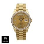 This Rolex Day-Date 228348RBR KW Yellow Gold & Diamonds Champagne Dial Replica is a stunning watch. It features an automatic movement with Rolex 3255 caliber and a power reserve of 60 hours. The case is made of 904L stainless steel and is 40.00 mm in size with a thickness of 12.00mm. The bracelet is also made of 904L stainless steel and is adjustable for all sizes. The dial is champagne in color with gem-set and stick indeces and 904L stainless steel stick hands. The watch is water-resistant and comes with a full 2 year international warranty.