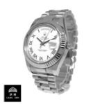 The Rolex Day-Date II 218239 V6 Stainless Steel White Dial Replica is a stunning watch. It features a 904L stainless steel case and bezel. with a sapphire crystal and adjustable links for all sizes. The white dial is adorned with Roman numerals and 904L stainless steel stick hands. The movement is an automatic 3156 caliber with a 60-hour power reserve and precision within COSC certification limits.