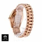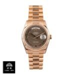 This Rolex Day-Date II replica watch is a perfect 1:1 clone of the original. It features a 904L stainless steel case and rose gold bezel. with a sapphire crystal and 41.00mm size. The chocolate brown dial has Roman numerals and 904L stainless steel stick hands. The 904L stainless steel Oyster bracelet is adjustable and has a fold clasp in rose gold.