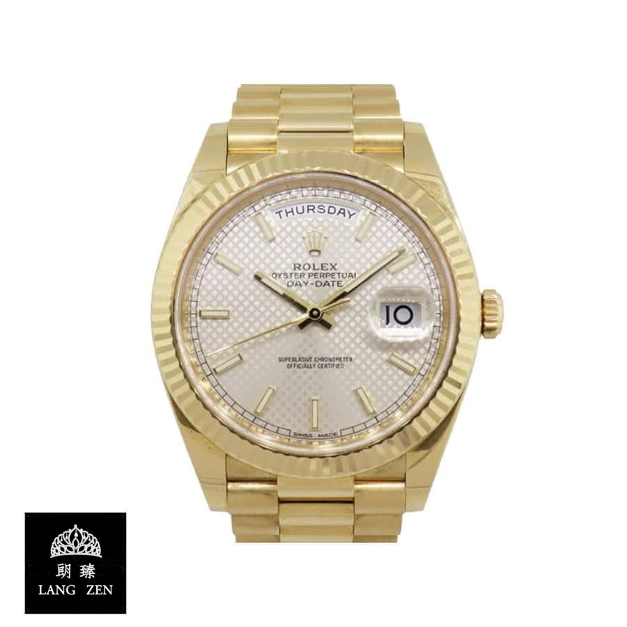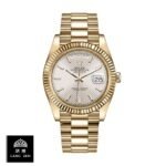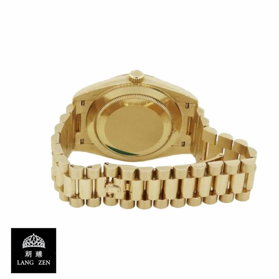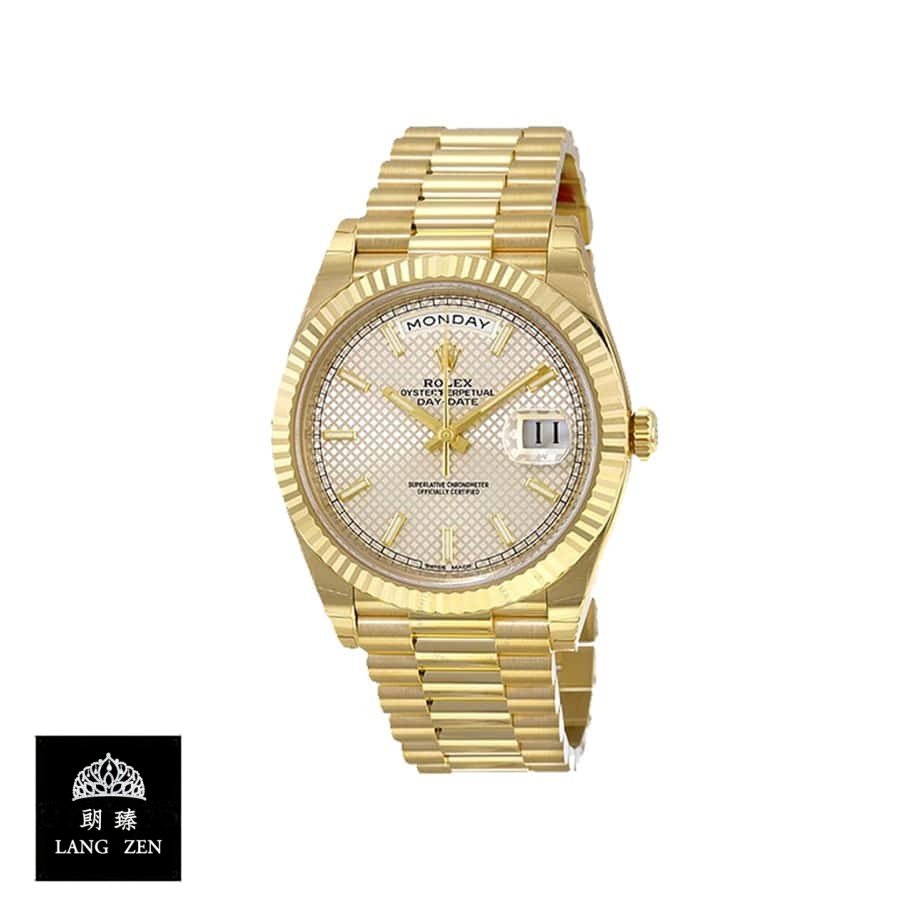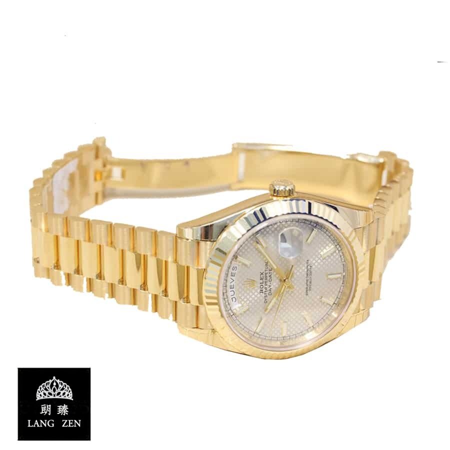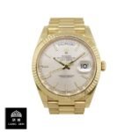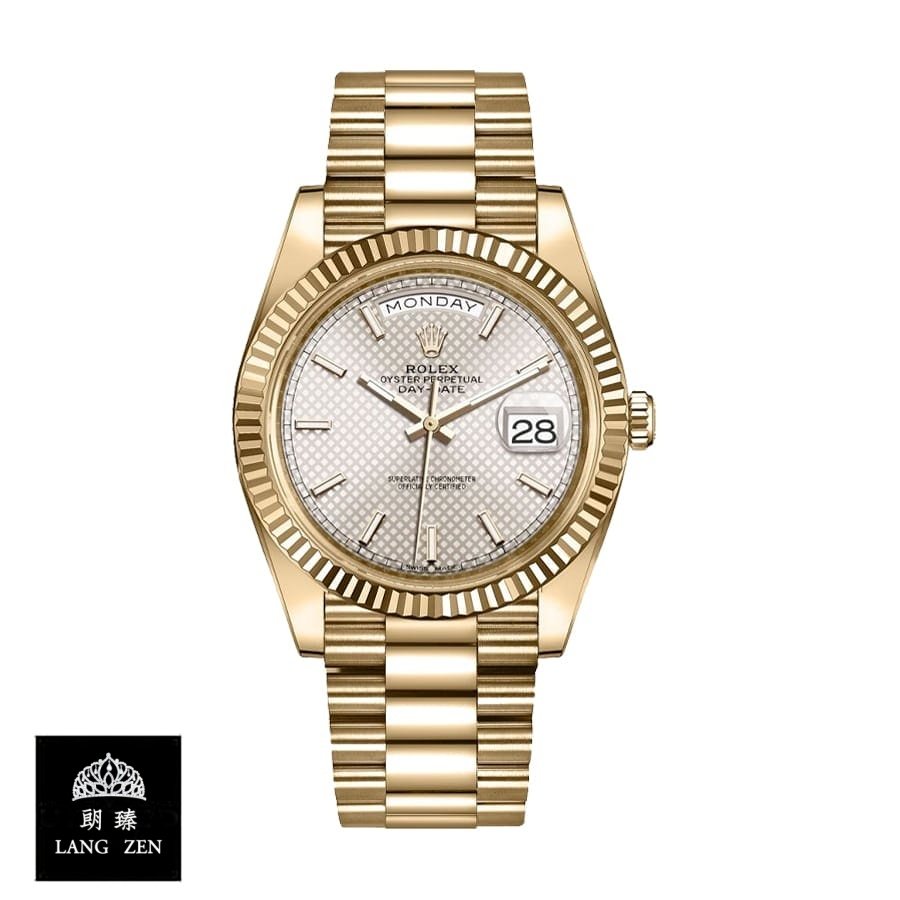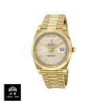 The Rolex Day-Date 228238 Yellow Gold Silver Diagonal Dial Replica is a stunning watch. It features a 904L stainless steel case with a yellow gold color and a sapphire crystal. The movement is an automatic caliber 3255 with a power reserve of 60 hours and a precision of (-3/+3 sec/day) within COSC certification limits. The bracelet is made of 904L stainless steel with an adjustable link and a fold clasp in yellow gold..