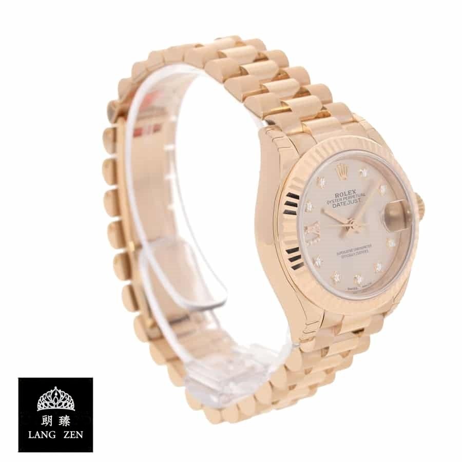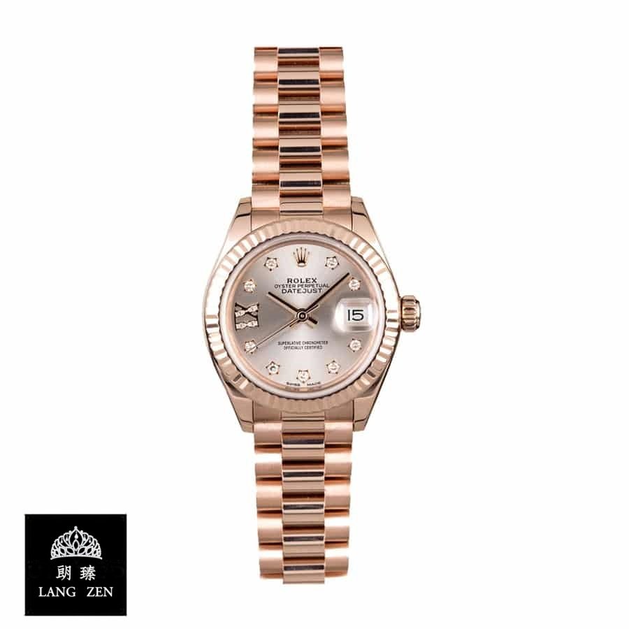 This Rolex Lady-Datejust 279175-0005 replica watch is a stunning piece of craftsmanship. It features an Everose Gold 904L stainless steel case and bezel. with a sapphire crystal and adjustable links. The dial is a beautiful pink sundust diamond with gem-set indices and 904L stainless steel stick hands. The movement is an automatic caliber 2236 with a 60-hour power reserve and precision within COSC certification limits. It has passed the 30m water resistance test. and is protected by a full 2-year international warranty.