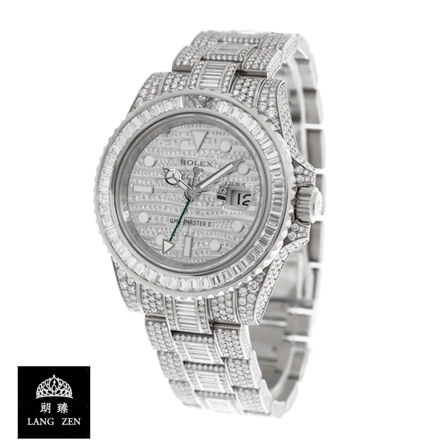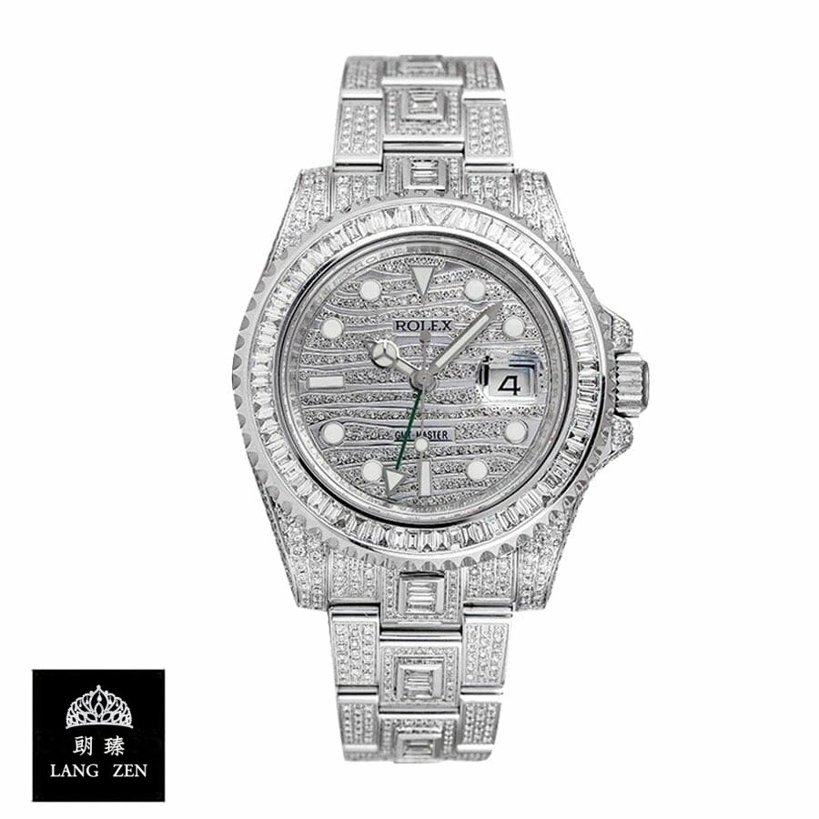 Encased in?904L stainless steel. the GMT-Master II showcases a perfect blend of robustness and elegance. The case and bracelet are fortified by a gem-set bezel and clasp. transforming it into a dazzling masterpiece that catches the light with every movement of your wrist. The dial. equally gem-set. features elegant stick indices and hands. creating a visually stunning contrast against the shine of diamonds. offering an illustrious?display of craftsmanship.