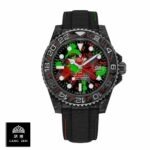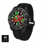 The Rolex GMT-Master II Motley Replica is a striking watch that is sure to turn heads. It features a 904L stainless steel case and bezel. with a black finish. The sapphire crystal is 40.00 mm in size and 12.00 mm in thickness. The fabric bracelet is adjustable and features a 904L stainless steel folding clasp in black. The dial is available in black. grey. red. and green. with stick and dot indices and 904L stainless steel stick hands. The movement is an automatic caliber 3186 with a 60-hour power reserve and precision within COSC certification limits.