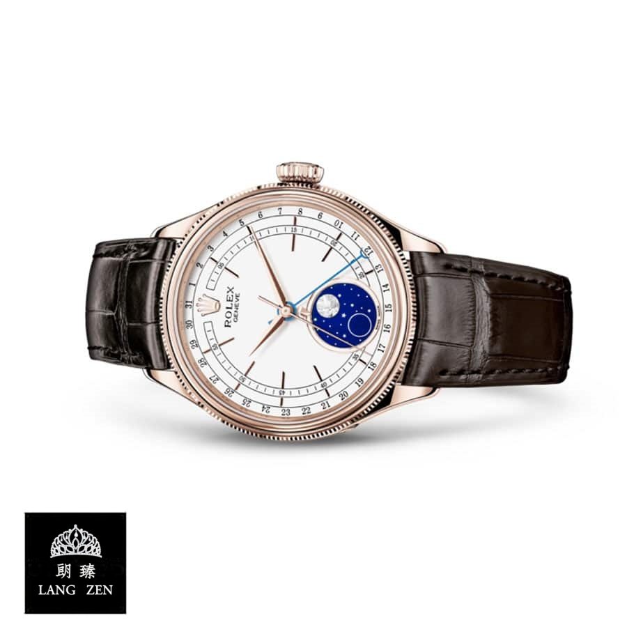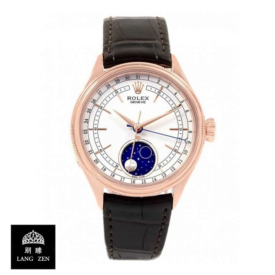 This Rolex Cellini Moonphase White Dial Pink Gold New 50535-0002 Replica is a high quality watch. It features a 904L stainless steel case and bezel in a beautiful pink gold color. The 39.00 mm case is 12.00 mm thick and is fitted with a sapphire crystal. The tobacco leather bracelet is adjustable and features a 904L stainless steel fold clasp in pink gold. The white dial features stick indices and 904L stainless steel stick hands. The movement is an automatic caliber 3195 with a 60-hour power reserve and a precision of -3/+3 seconds per day within COSC certification limits.