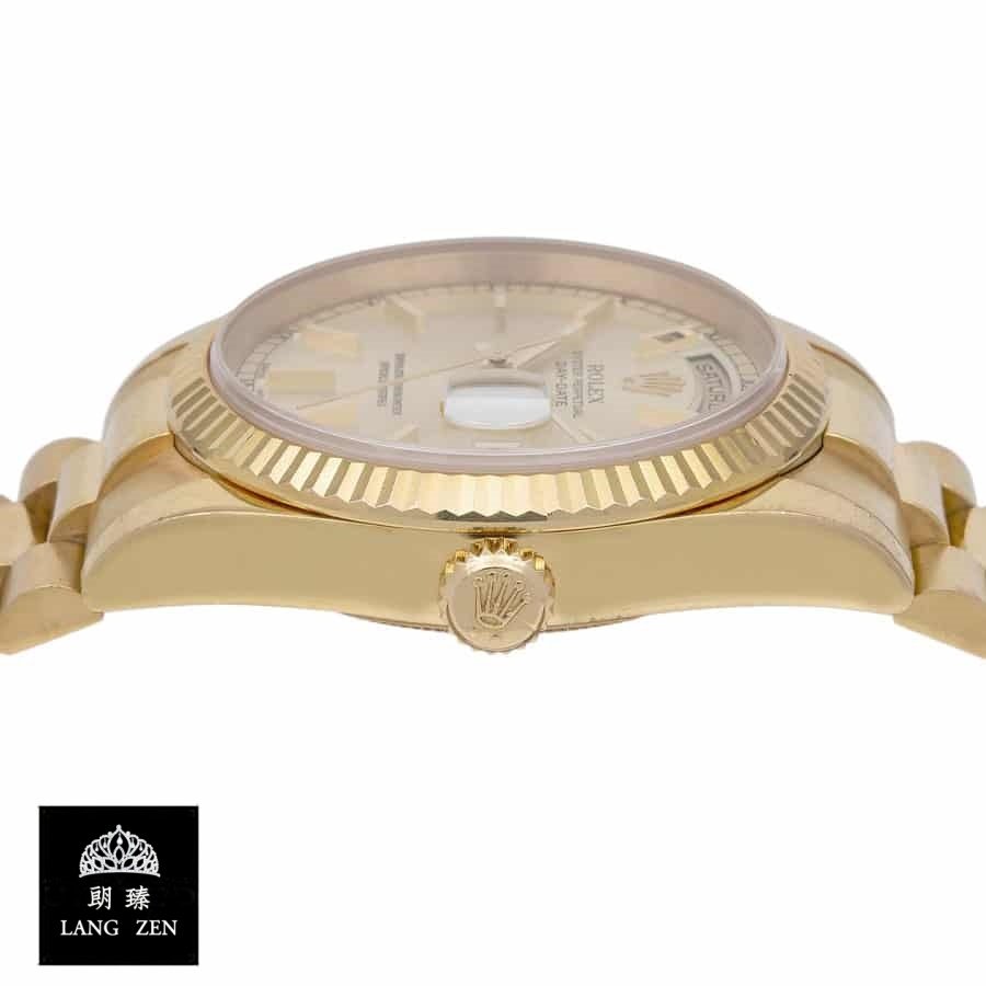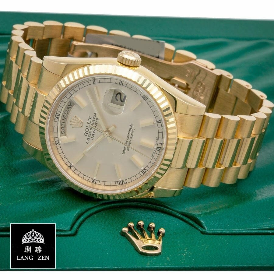 This Rolex Day-Date 40 228239 EW Stainless Steel White Gold Dial Oyster Replica is a stunning watch. It features a 904L stainless steel case and bezel. with a yellow gold color. The sapphire crystal is 36.00mm in size and the movement is an automatic caliber 3155 with a 60-hour power reserve and precision of -3/+3 sec/day within COSC certification limits. The dial is ivory in color with stick and dot indices. and the hands are 904L stainless steel stick type. The bracelet is a 904L stainless steel jubilee type with adjustable links and a 904L stainless steel folding clasp in yellow gold.