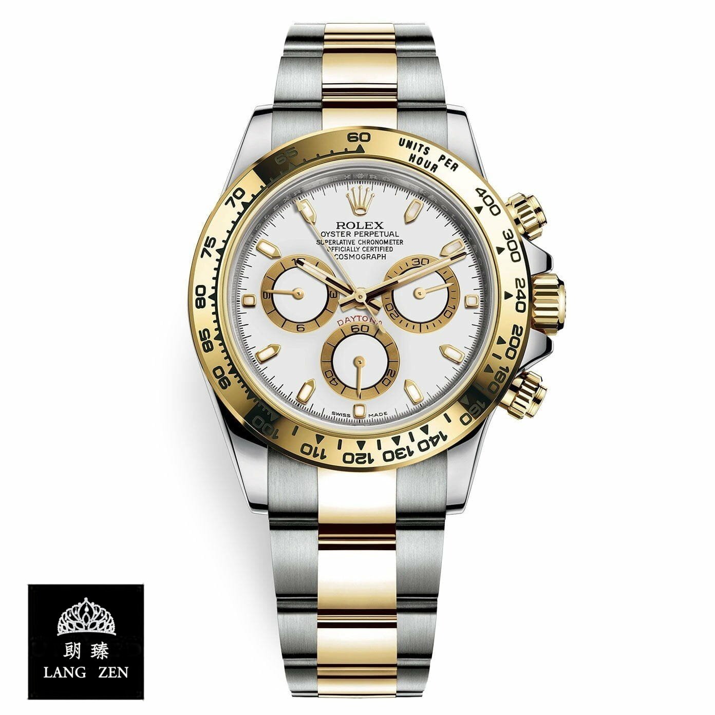 Introducing the iconic Rolex Cosmograph Daytona. a legendary timepiece renowned for its precision. functionality. and timeless design. The Rolex 4030 model. equipped with an automatic movement and caliber 3186. showcases the brand’s commitment to excellence. The 40mm case. made from premium 904L stainless steel. harmoniously combines gold and steel elements. creating an elegant and sophisticated look. The gold bezel adds a touch of luxury and complements the overall aesthetic.