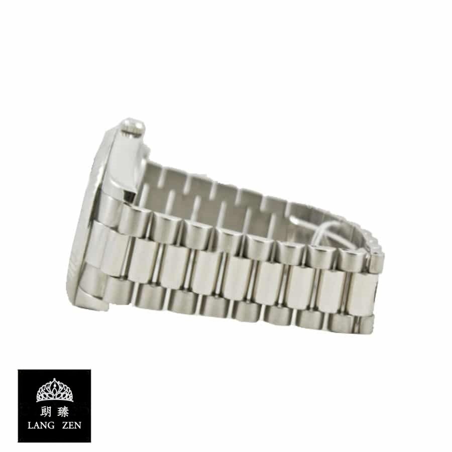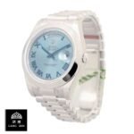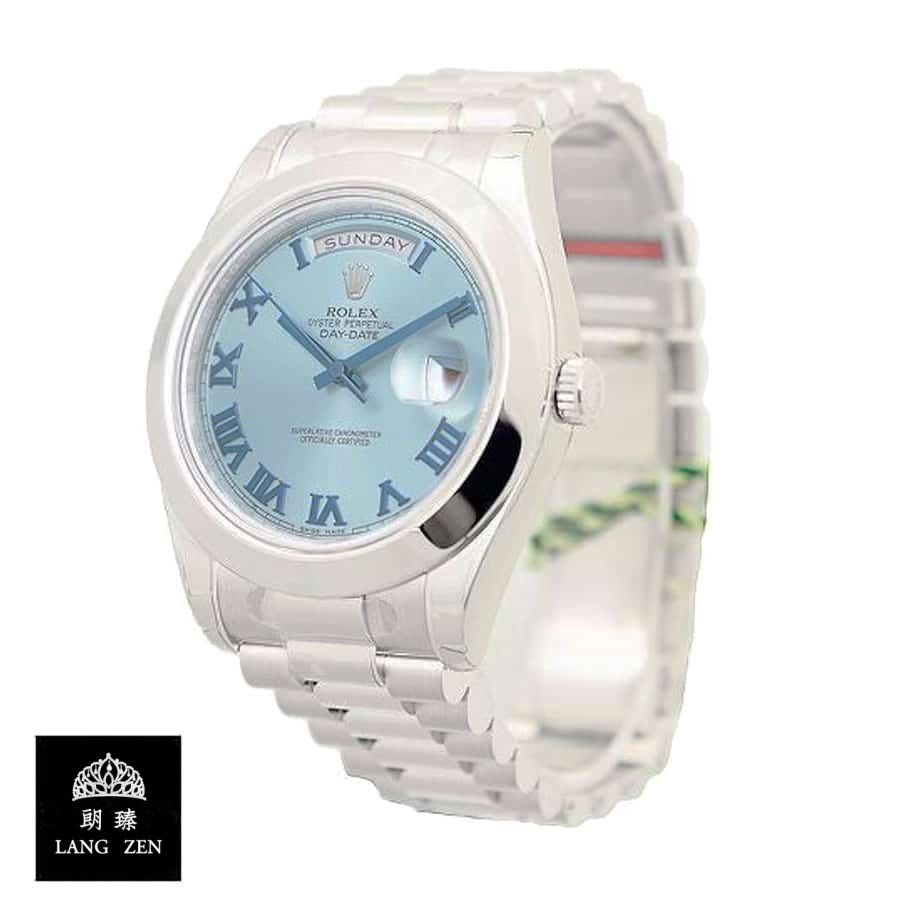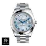 This Rolex Day-Date II Stainless Steel Ice Blue Roman Dial 218206 Replica is a stunning watch. It features a 904L stainless steel case and bezel. with a sapphire crystal and adjustable links for all sizes. The dial is ice blue with Roman numerals and stick hands. The movement is an automatic 3156 caliber with a 60-hour power reserve and precision within COSC certification limits. The watch is water-resistant up to 30m and comes with a full 2-year international warranty.